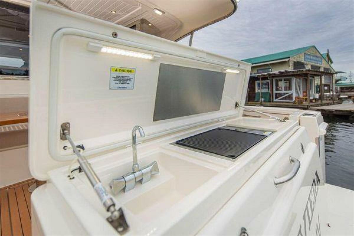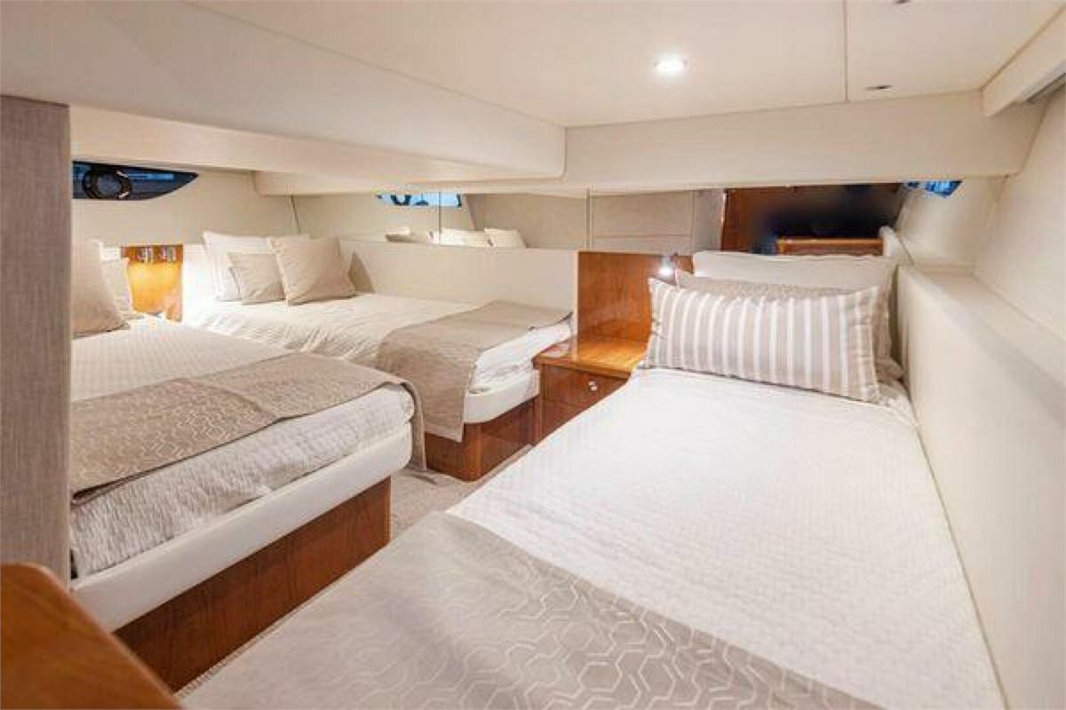 The 2019 Riviera 395 SUV is a versatile enclosed sport yacht offering excellent performance and refined cruising comfort. Powered by twin Volvo Penta D6 IPS 500 engines with joystick control, SABINE delivers confident handling and efficient cruising. The two-cabin, one-head layout sleeps five and features an up-galley main deck with excellent indoor/outdoor flow. Well maintained with recent service and thoughtful equipment additions.
