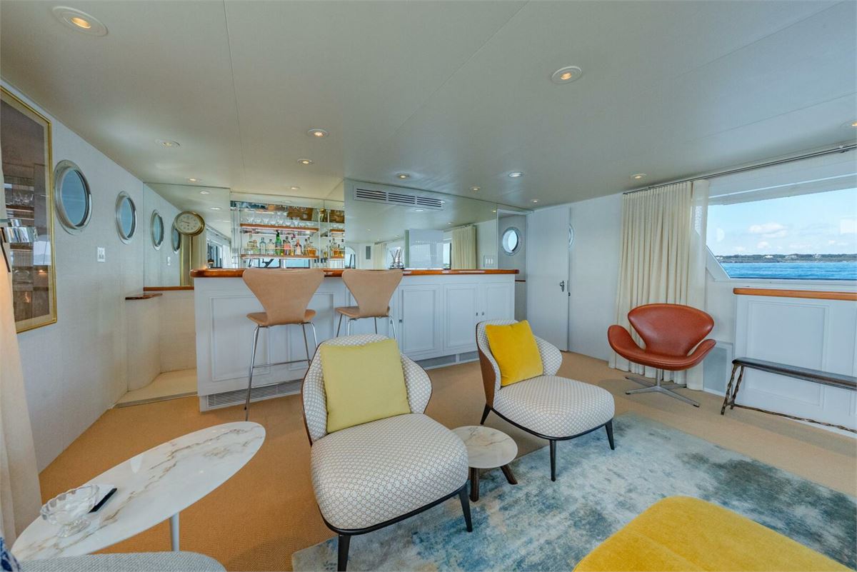 Refreshed interior with new custom bar area forward in the salon