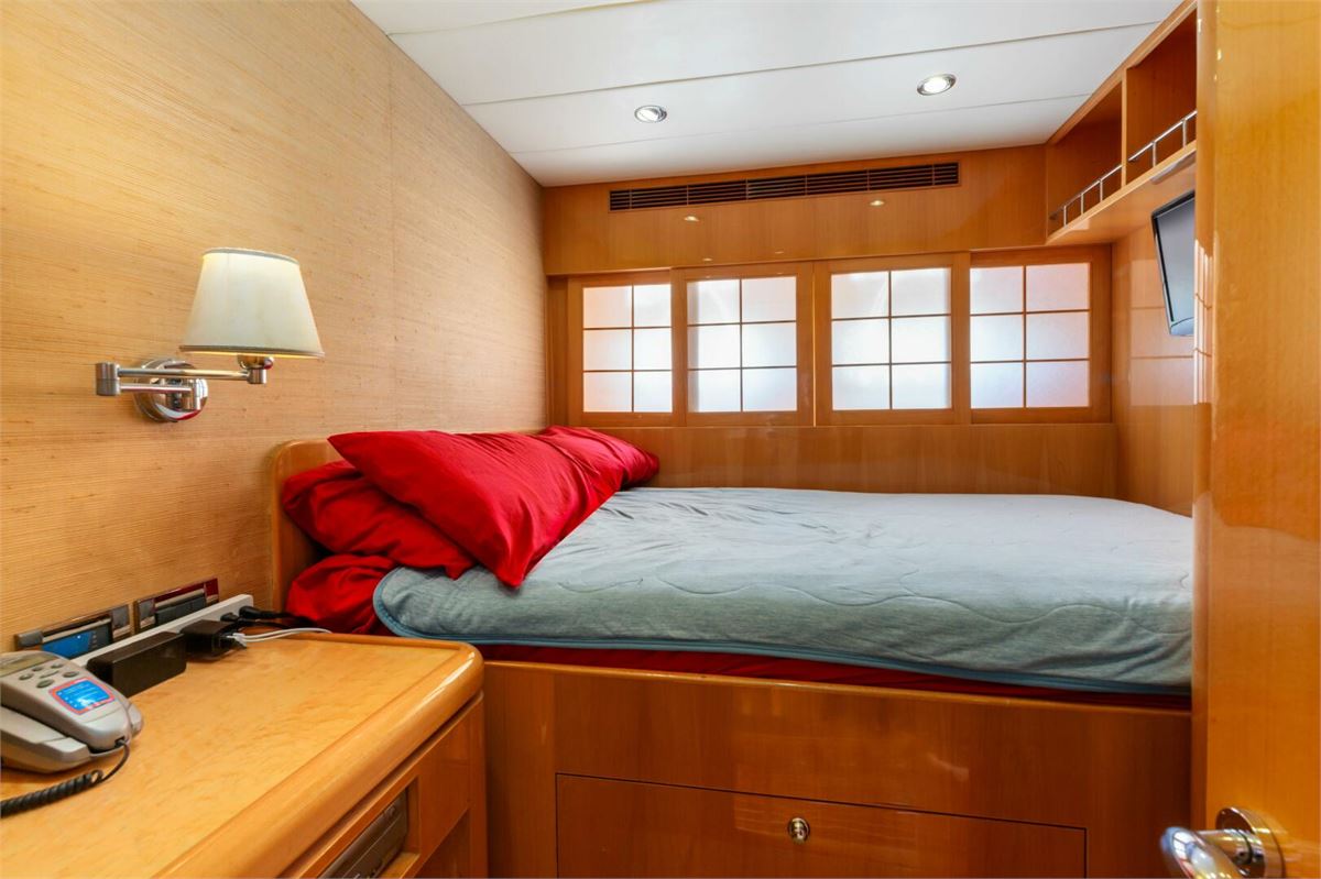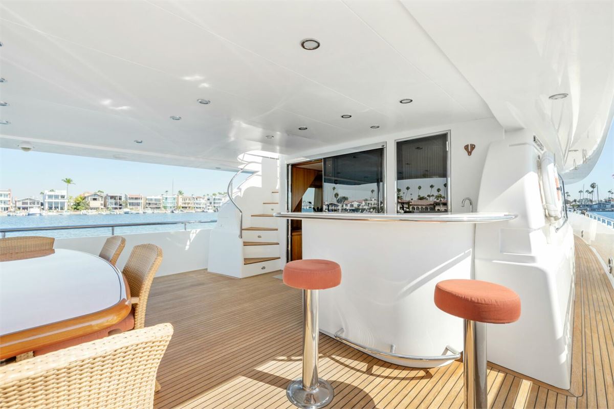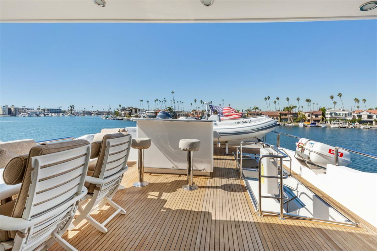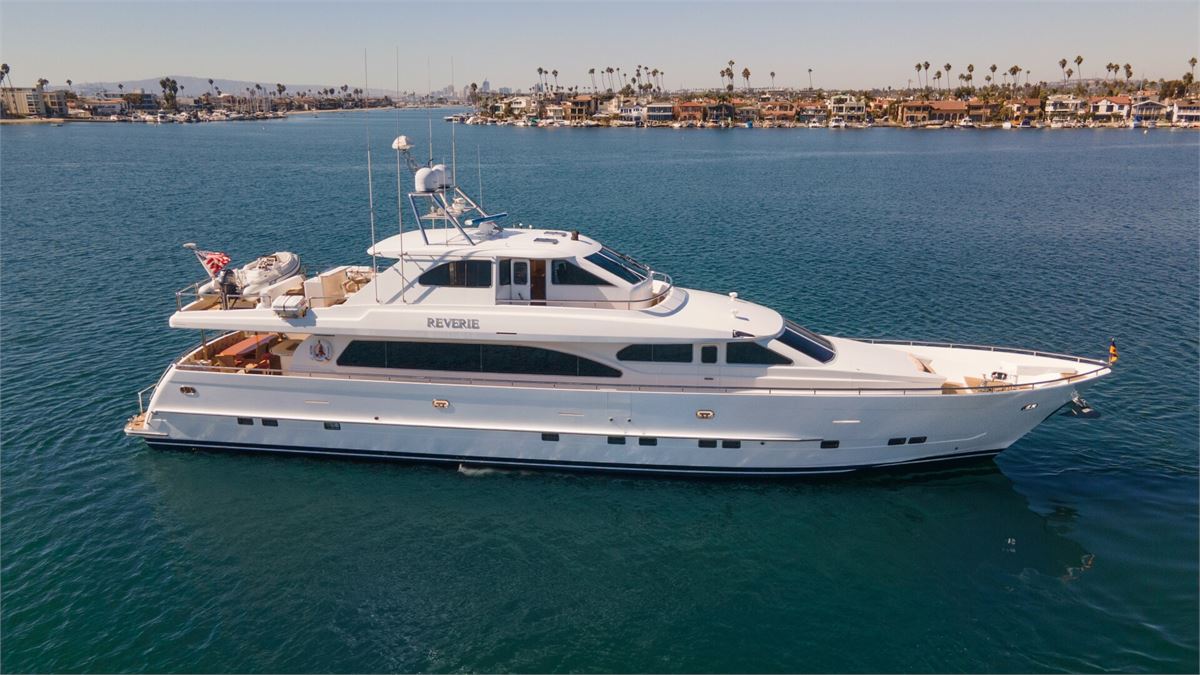 REVERIE is a one-of-a-kind custom 98’ Horizon Tri-Deck, offered for the first time by her original owner, who uniquely served as the engineer of record for Horizon during her construction. She is exceptionally well equipped, featuring an ASEA shore power converter that allows compatibility with any power source, a large inverter bank for quiet nights at anchor, bow and stern thrusters, a diesel heater, passarelle, and two davits. With low engine hours (under 1,000 on the mains), REVERIE is an excellent platform for cruising in both warm and cold climates and represents a remarkable opportunity in this size range.