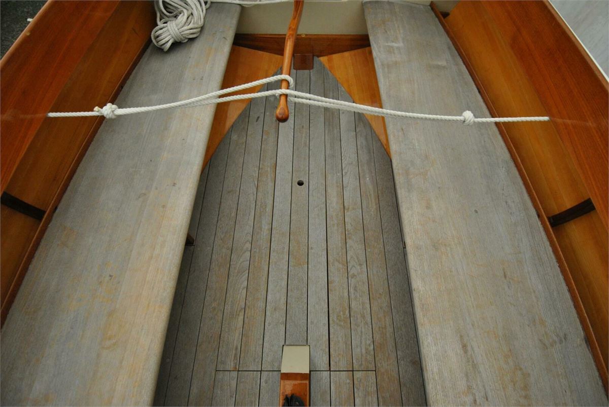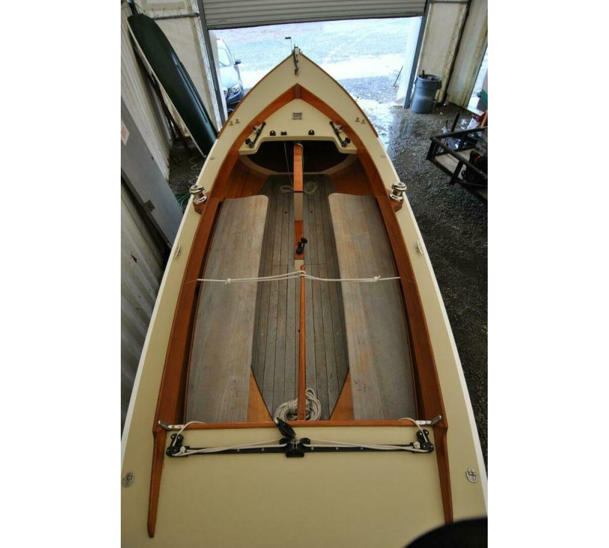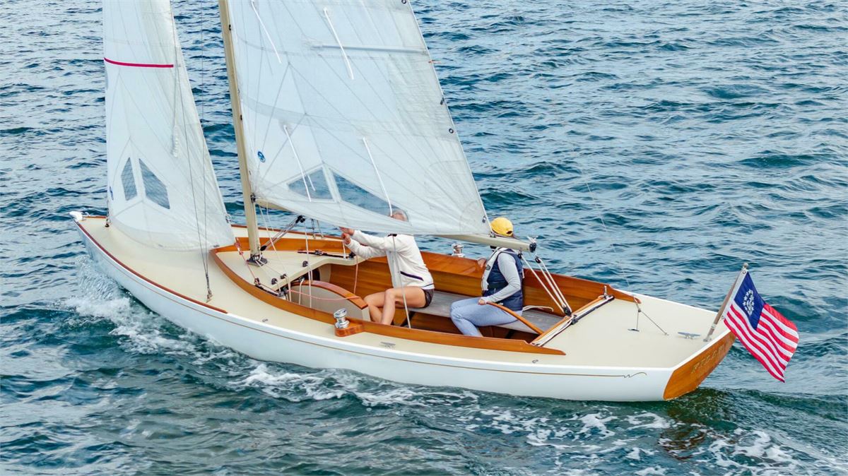 FILLY is a pristine W-22 daysailer that perfectly blends classic design with exceptional sailing performance. Crafted by Artisan Boatworks in Rockport, Maine, and designed by Joel and Steve White, she features a weighted centerboard and nearly 1,000 lbs. of lead ballast, providing remarkable stability and a shallow 22-inch draft (5′ 7″ down) for easy access to hidden coves. Her finely varnished wood, elegant joinery, and sculpted seating make her as visually striking as she is seaworthy. Ideal for day sailing, one-design racing, or simply enjoying the artistry of traditional wooden construction, FILLY offers timeless appeal for sailors who appreciate both form and function.