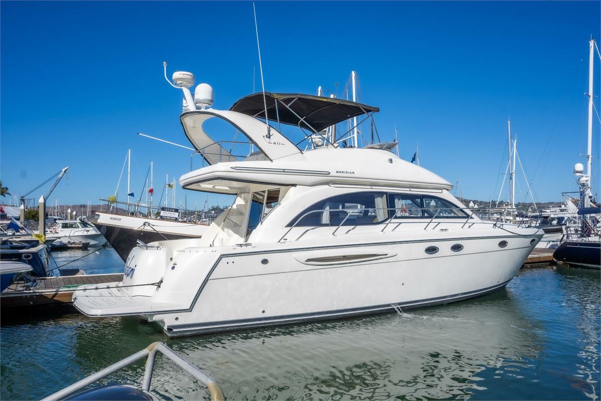 NALANI presents exceptional value in today's market. This Meridian 411 is a prime example of a well-cared-for yacht with only two previous owners, recently serviced and boasting low hours. The layout of NALANI is surprisingly spacious for its size, featuring two queen-sized berths, two ensuite heads, a generous galley and dinette area, as well as a roomy salon and flybridge helm. This vessel combines comfort and functionality in a cost-effective package that is both affordable and easy to maintain.