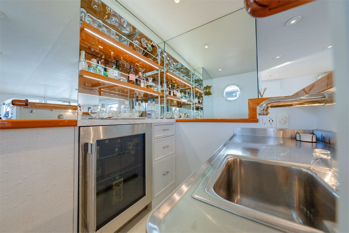 Refreshed interior with new custom bar area forward in the salon