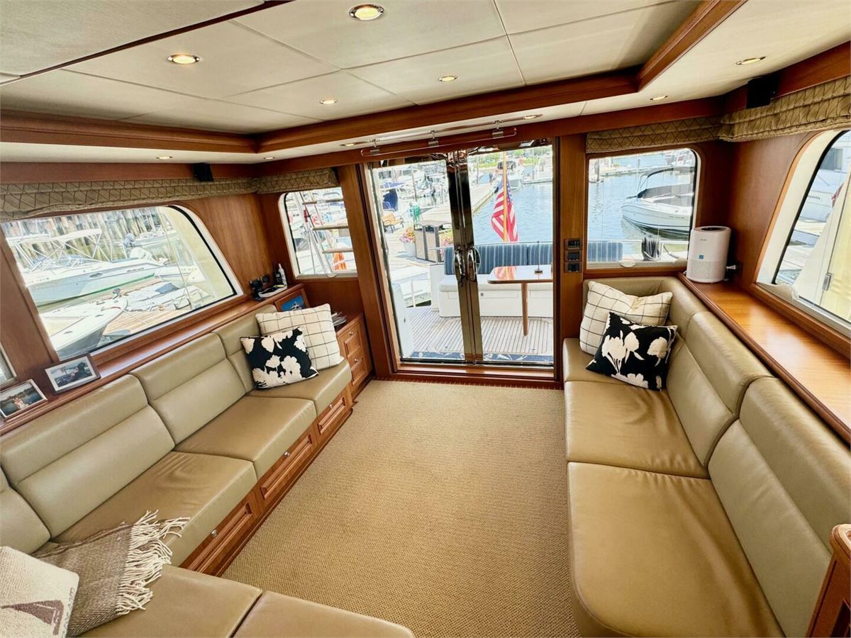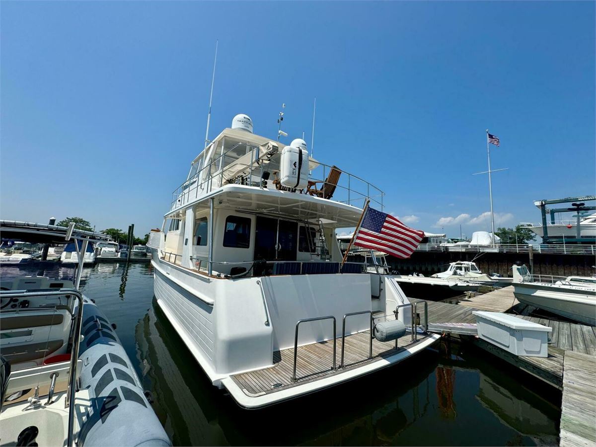 TOORA LOORA is an outstanding example of the highly respected Aleutian 53 built by Grand Banks, combining elegant design with exceptional cruising capability. Her spacious three-stateroom, two-head layout features a full-beam master suite, an inviting salon, and an on-deck galley integrated within the expansive raised pilothouse. A generous aft deck, wide walk-around side decks, and a large flybridge create exceptional spaces for outdoor enjoyment and entertaining. Below, a full-beam stand-up engine room and utility area provide excellent access and functionality rarely found in yachts of this size.