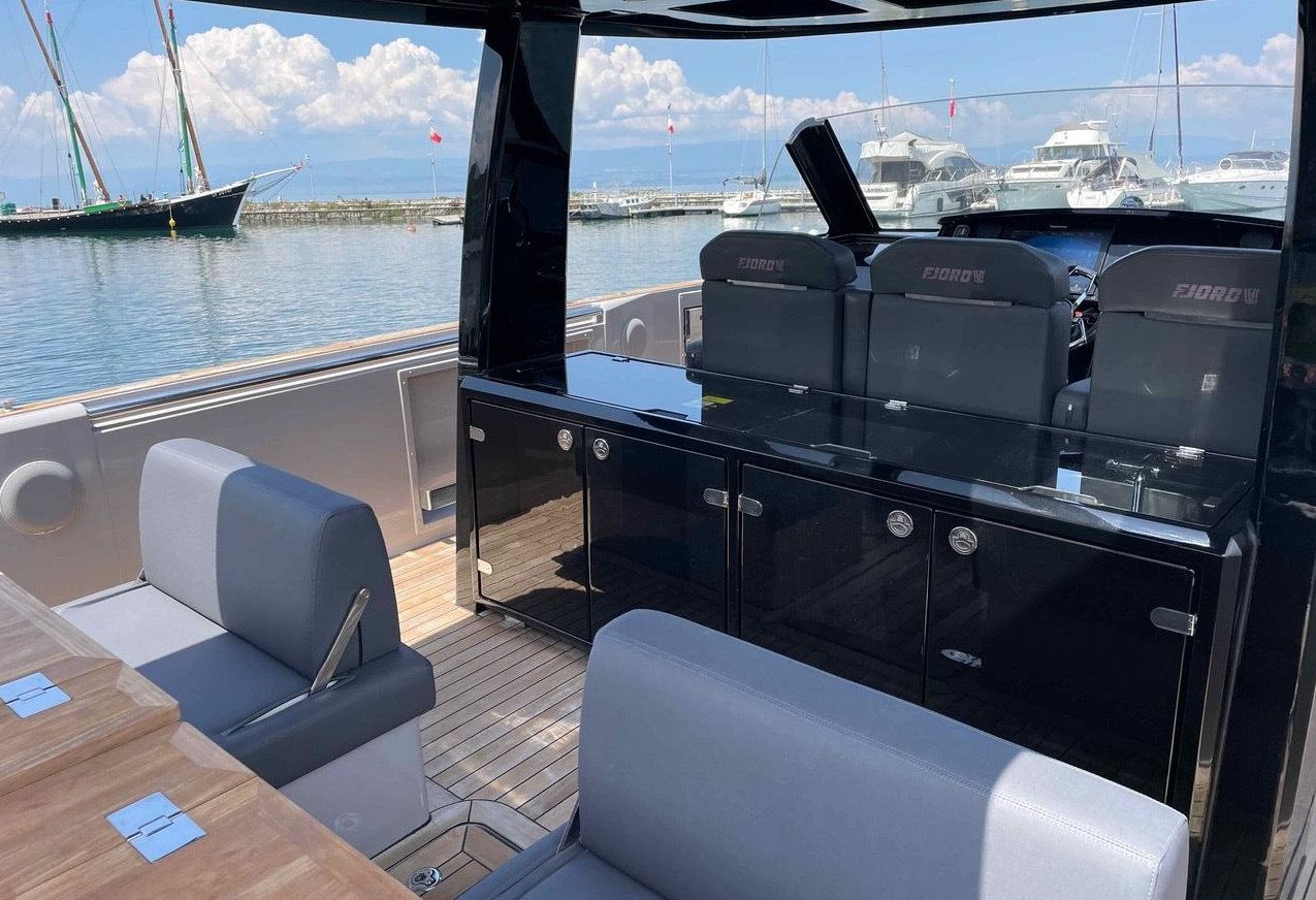 Avec ses lignes modernes, son pont spacieux et ses finitions haut de gamme, le Fjord 42 est le choix idéal pour une journée inoubliable sur le lac Léman.