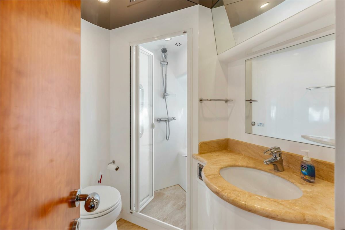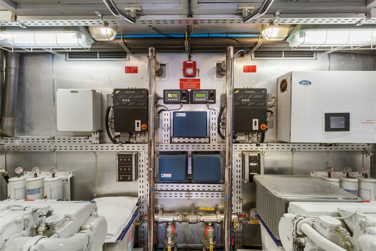 REVERIE is a one-of-a-kind custom 98’ Horizon Tri-Deck, offered for the first time by her original owner, who uniquely served as the engineer of record for Horizon during her construction. She is exceptionally well equipped, featuring an ASEA shore power converter that allows compatibility with any power source, a large inverter bank for quiet nights at anchor, bow and stern thrusters, a diesel heater, passarelle, and two davits. With low engine hours (under 1,000 on the mains), REVERIE is an excellent platform for cruising in both warm and cold climates and represents a remarkable opportunity in this size range.