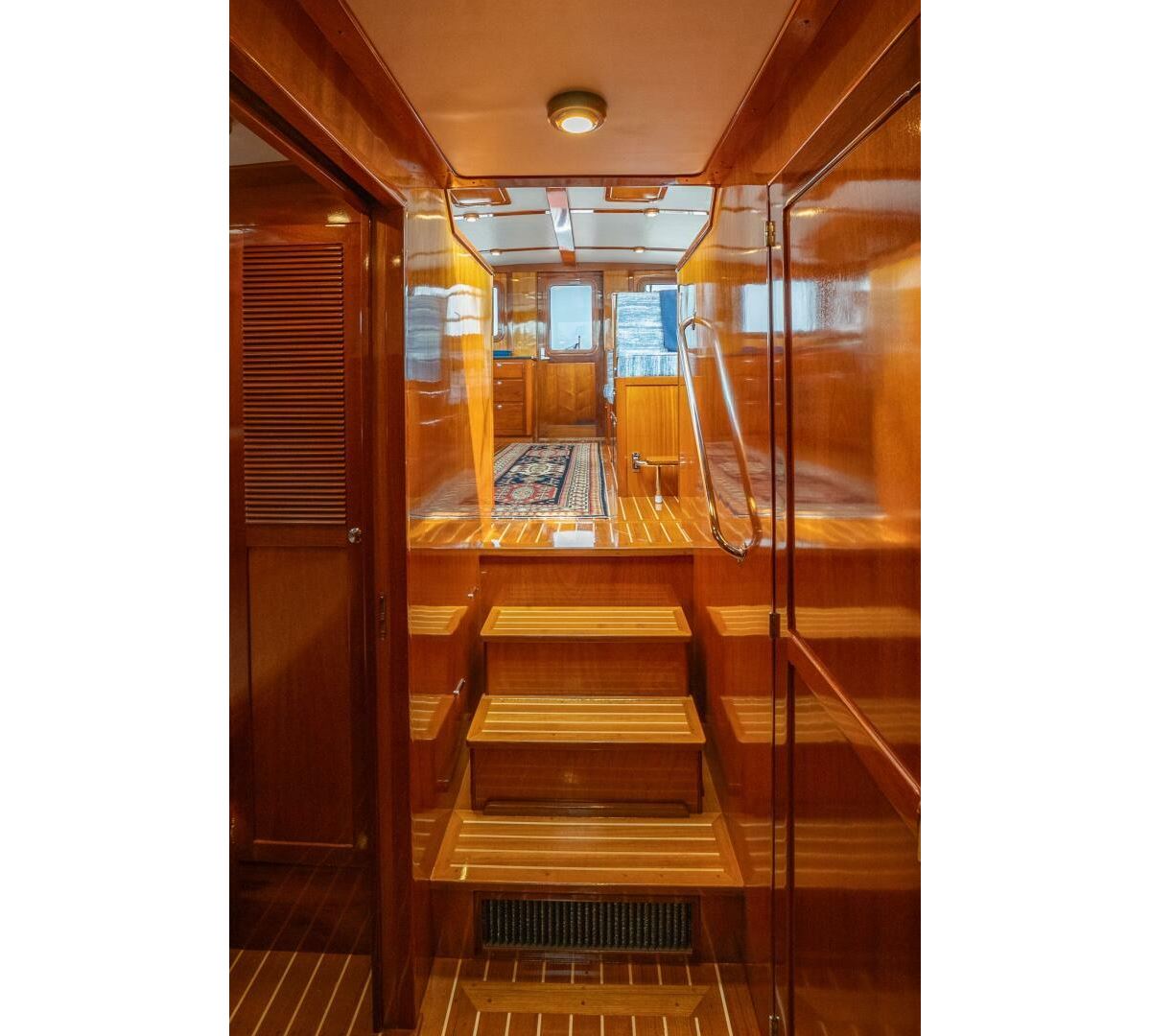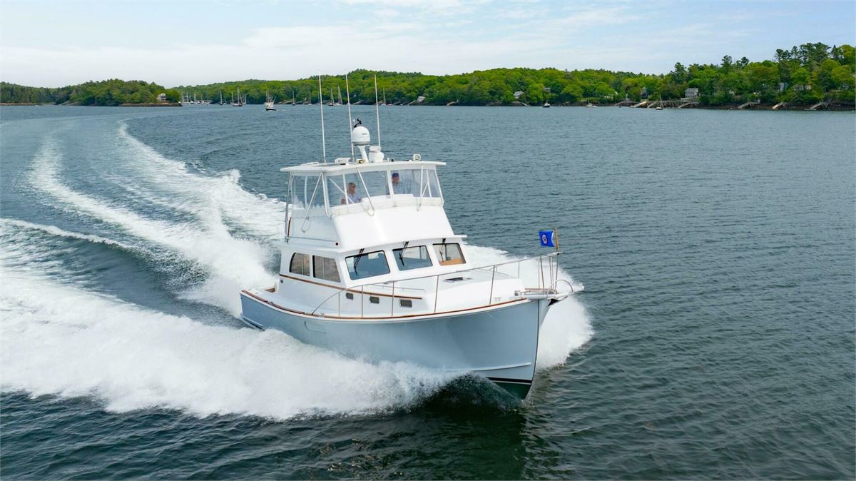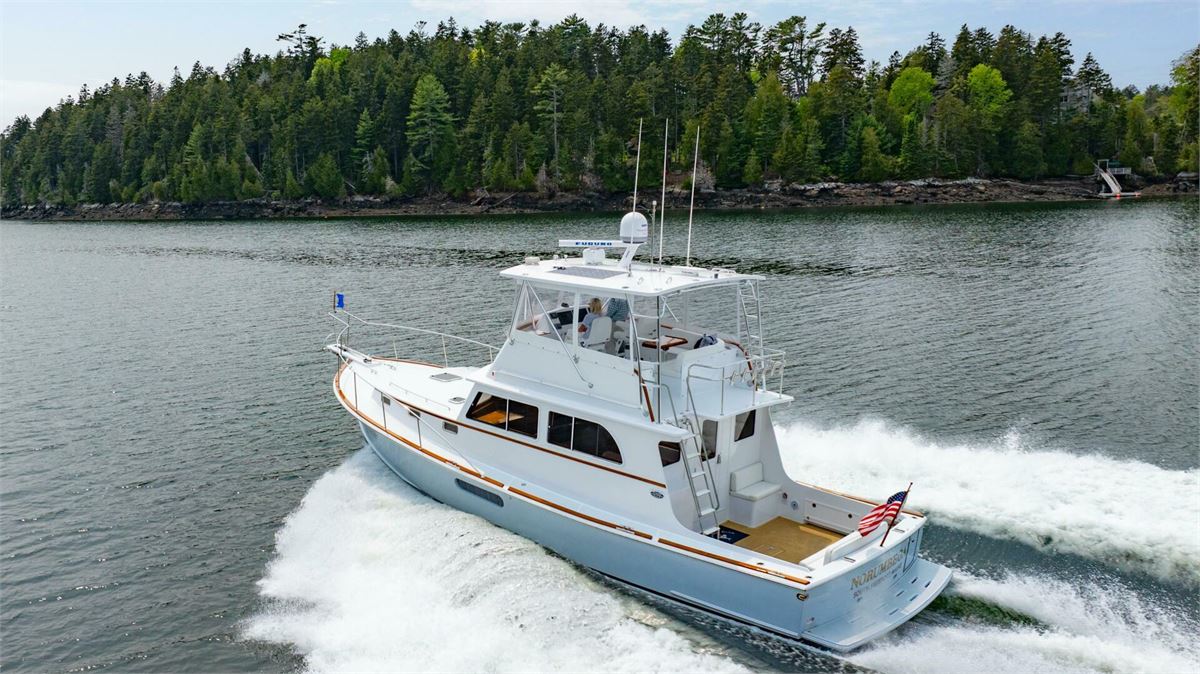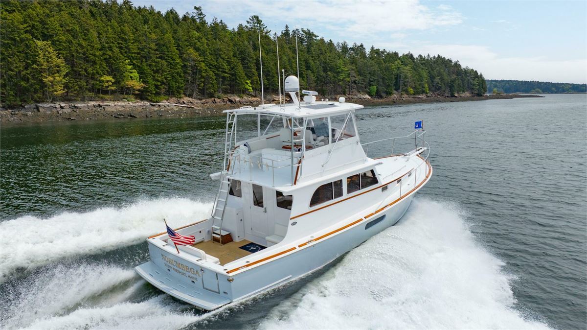 NORUMBEGA is a well-built, custom Lowell Brothers 43, crafted by Bruce Farrin’s Boatshop in Walpole, Maine. Known for its excellent seakeeping abilities, the Lowell 43 hull serves as the foundation for this practical Downeast flybridge yacht. Outfitted with high-quality components, solid craftsmanship, and thoughtful design elements rarely found in production models, she offers both performance and comfort. Featuring a two-stateroom layout and powered by a single 1200hp MAN diesel, NORUMBEGA cruises efficiently at 20 knots, while hydraulic bow and stern thrusters ensure precise handling at the dock. A capable and well-designed Downeast yacht, she is a great choice for discerning buyers.