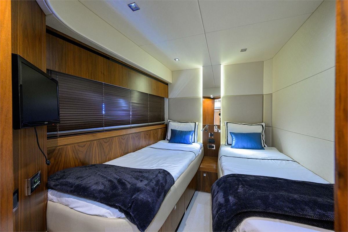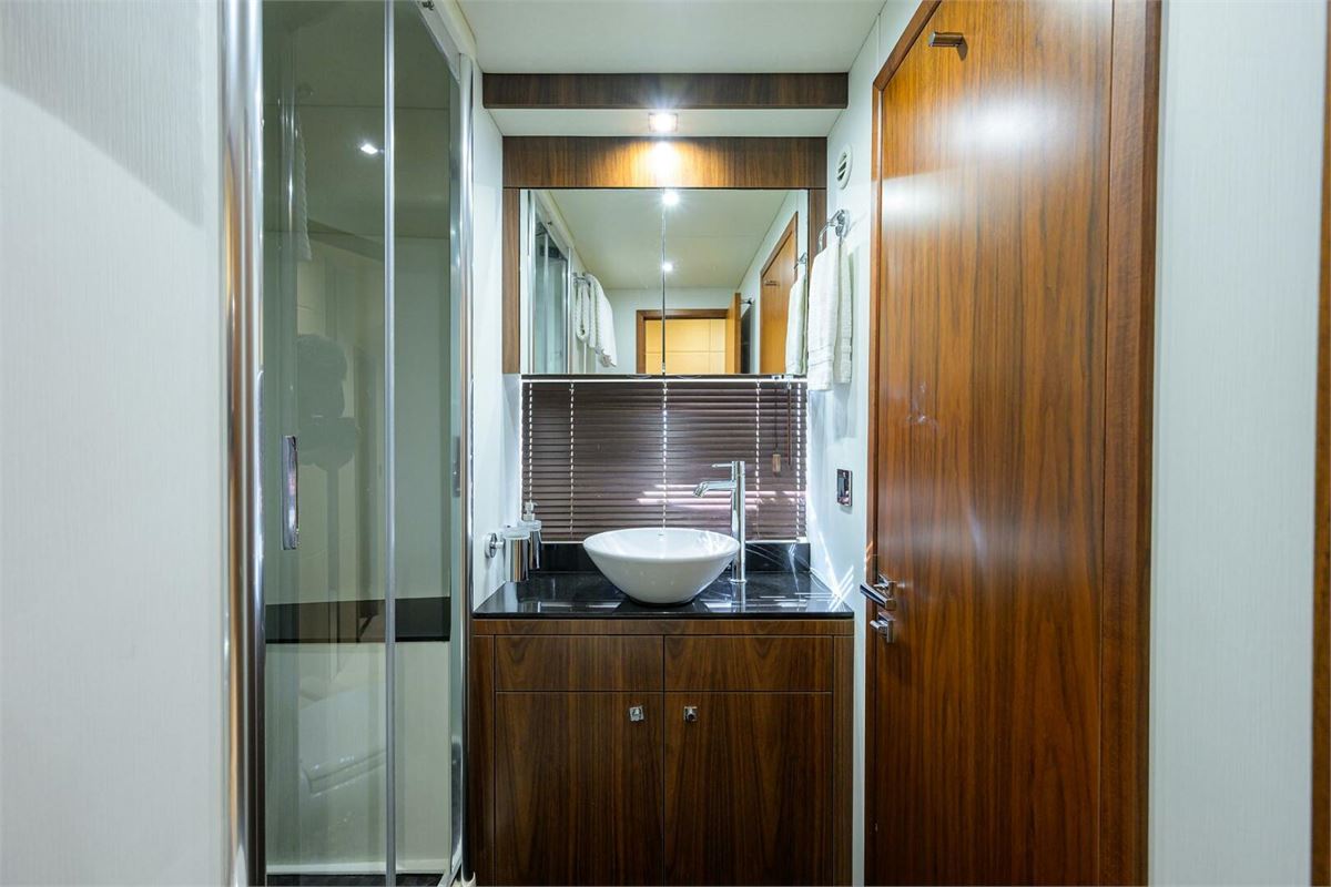 CATCH THE WAVE is an exceptional Sunseeker Manhattan 73’ with luxurious accommodations for 8 guests in 4 staterooms. Recent upgrades have kept her in excellent condition. This sophisticated yacht offers spacious entertaining areas, a full-beam master cabin, top-of-the-line MAN engines for speeds up to 30 knots, and zero-speed stabilizers for a smooth ride.
