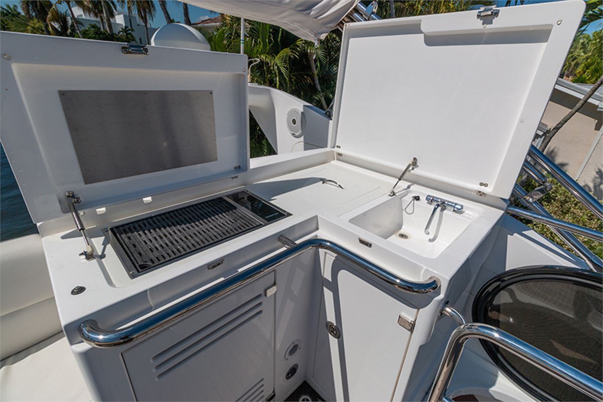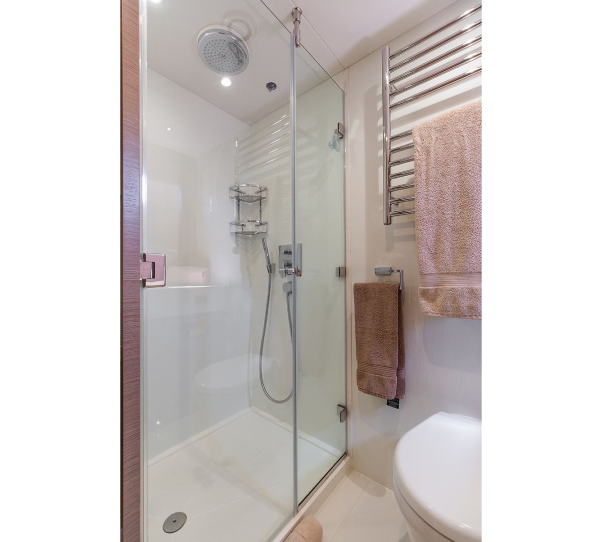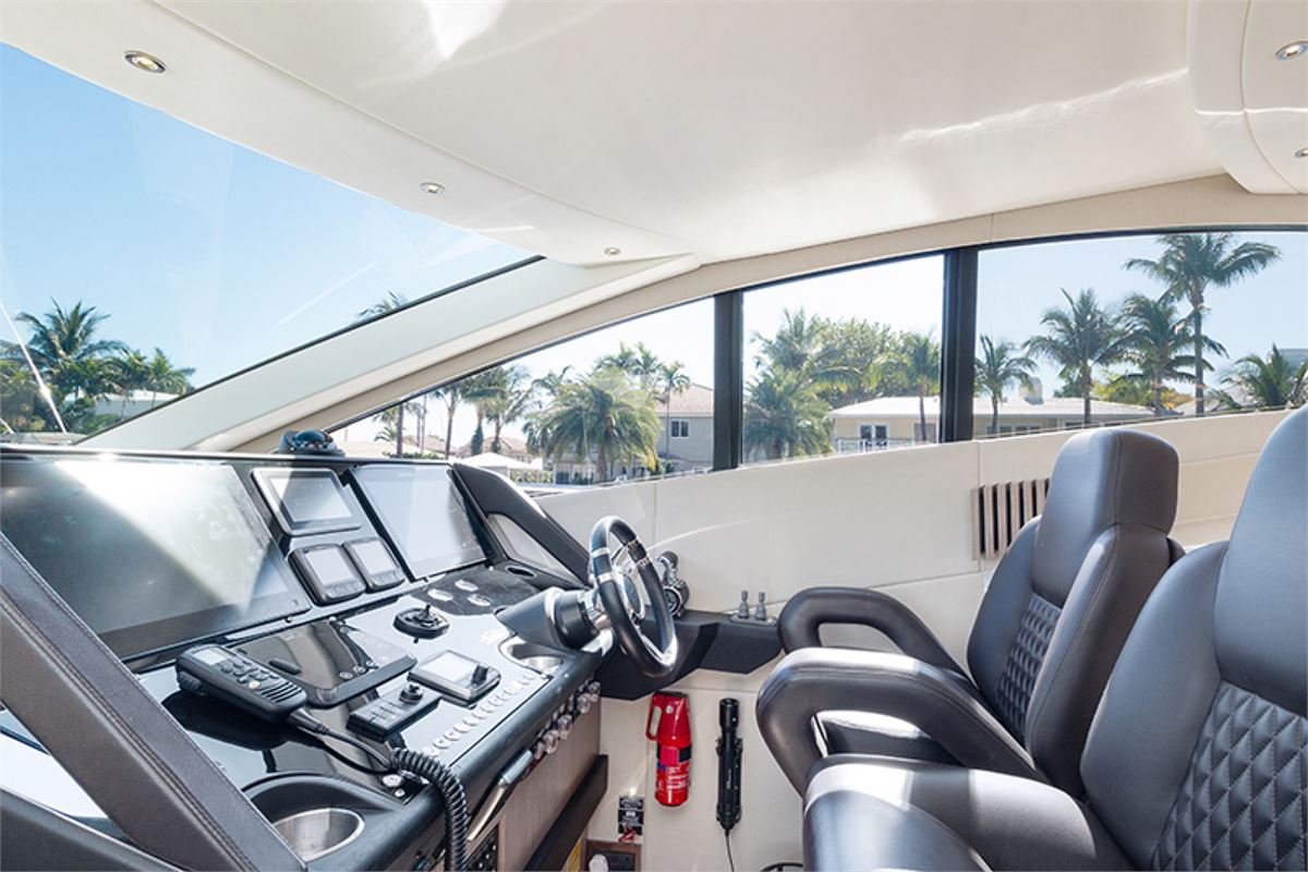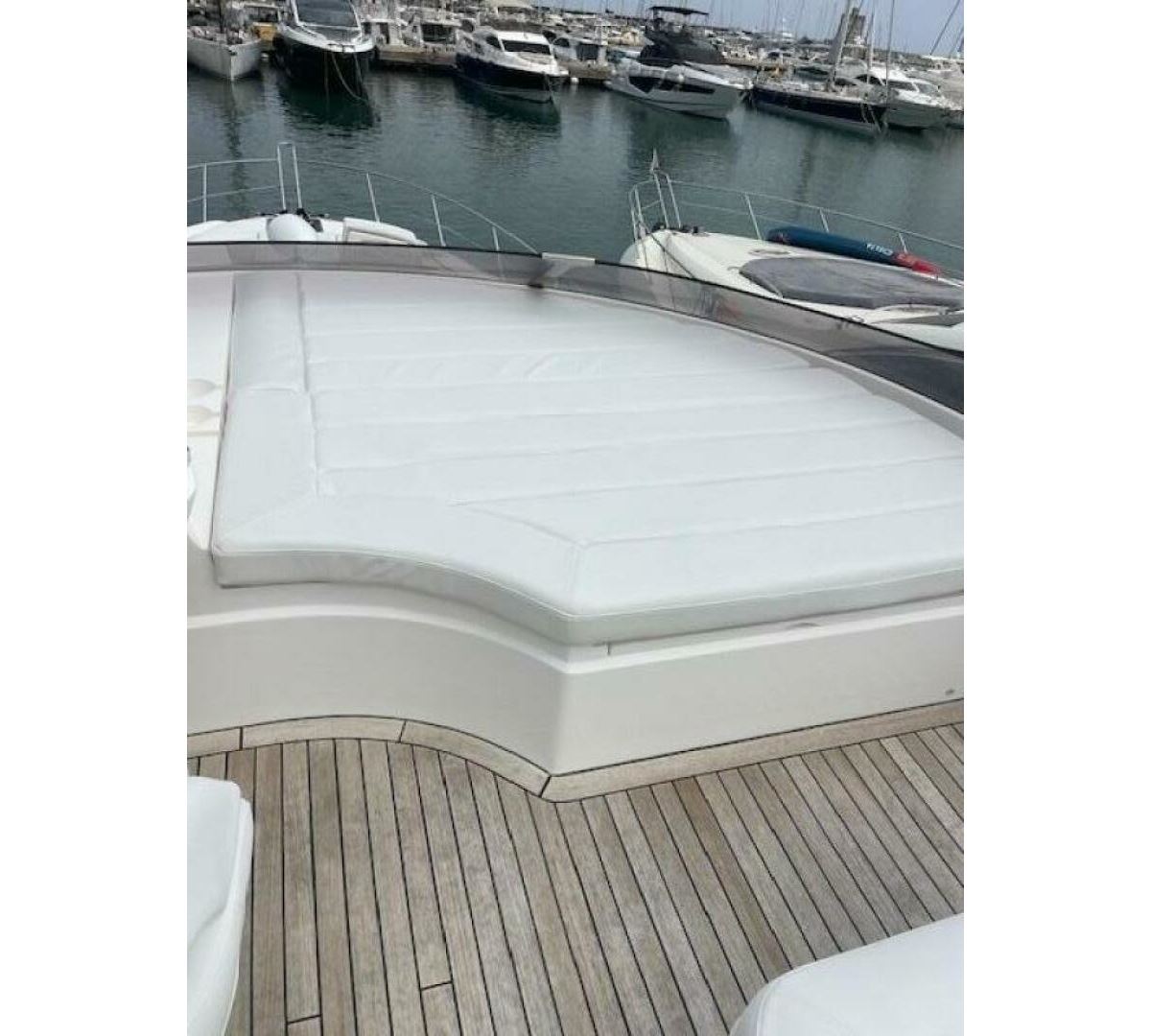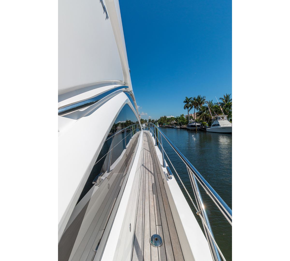 LONG WAY ROUND is a 2015 Model launched in June of 2014 and delivered in October 2014. It is built to UK and European specifications. Built with Factory Option Arneson Drives, this rarely available model 68 Sports Yacht is amongst the most ecologically friendly boats on the water today. With a fuel efficiency of up to 30% greater than the common shaft drive model, the boat operates more efficiently at both slow displacement speeds and high planning speeds of up to 44 knots. This allows high-speed cruising over long distances at a far lower cost and ecological impact than the common shaft drive version, whilst maintaining excellent stability and comfort.