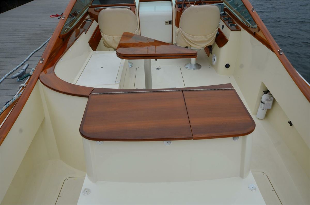 TANGO is a rare, impeccably maintained Hinckley Talaria 29 Runabout, distinguished by her exceptionally low hours and exclusive freshwater history. Stored indoors each winter as part of Hinckley’s premier Winter JetBoat Program and kept on a covered lift in a boathouse during the brief summer season in upstate New York, TANGO has been spared the harsh effects of sun and salt exposure. As a result, she shows virtually no signs of age.