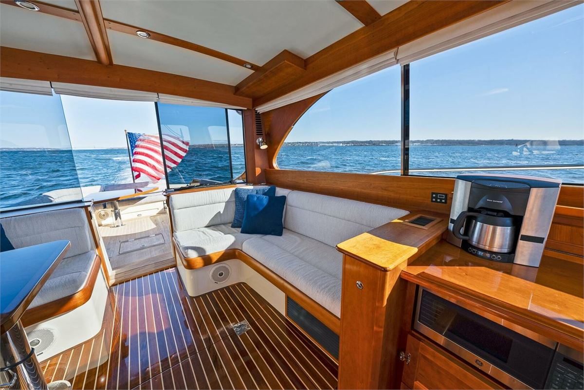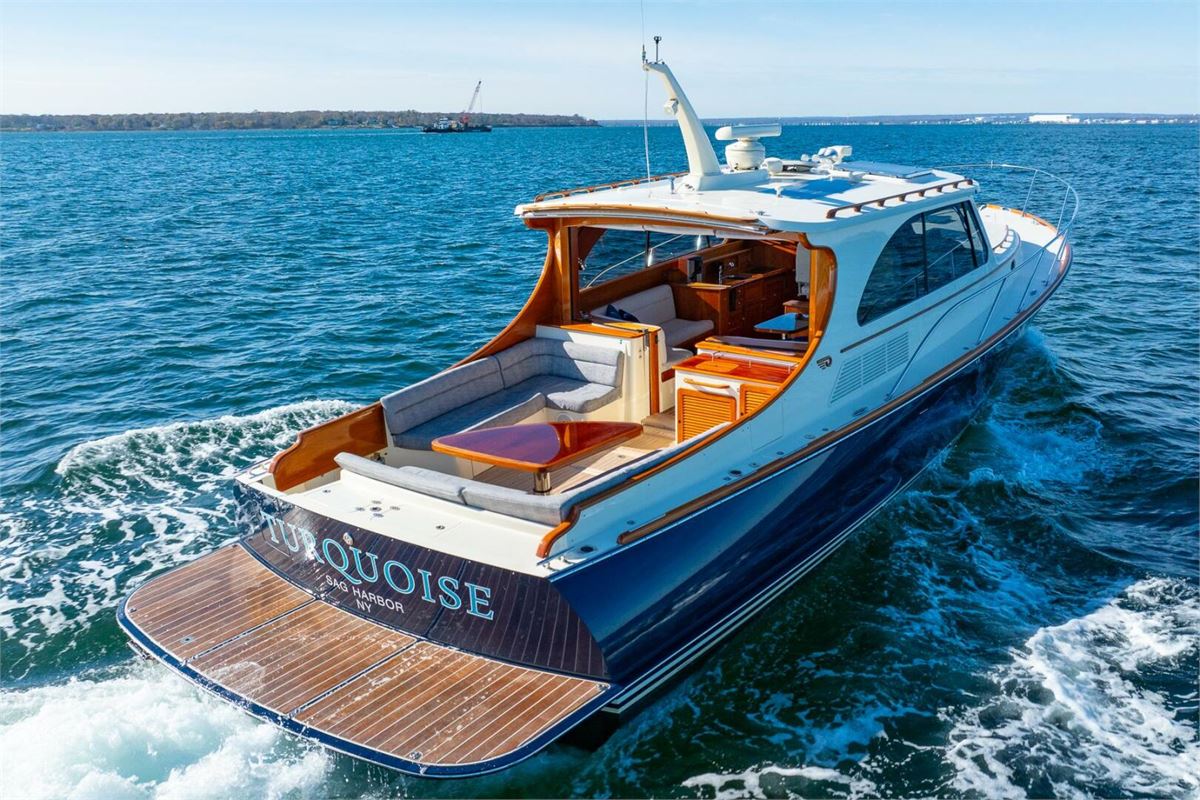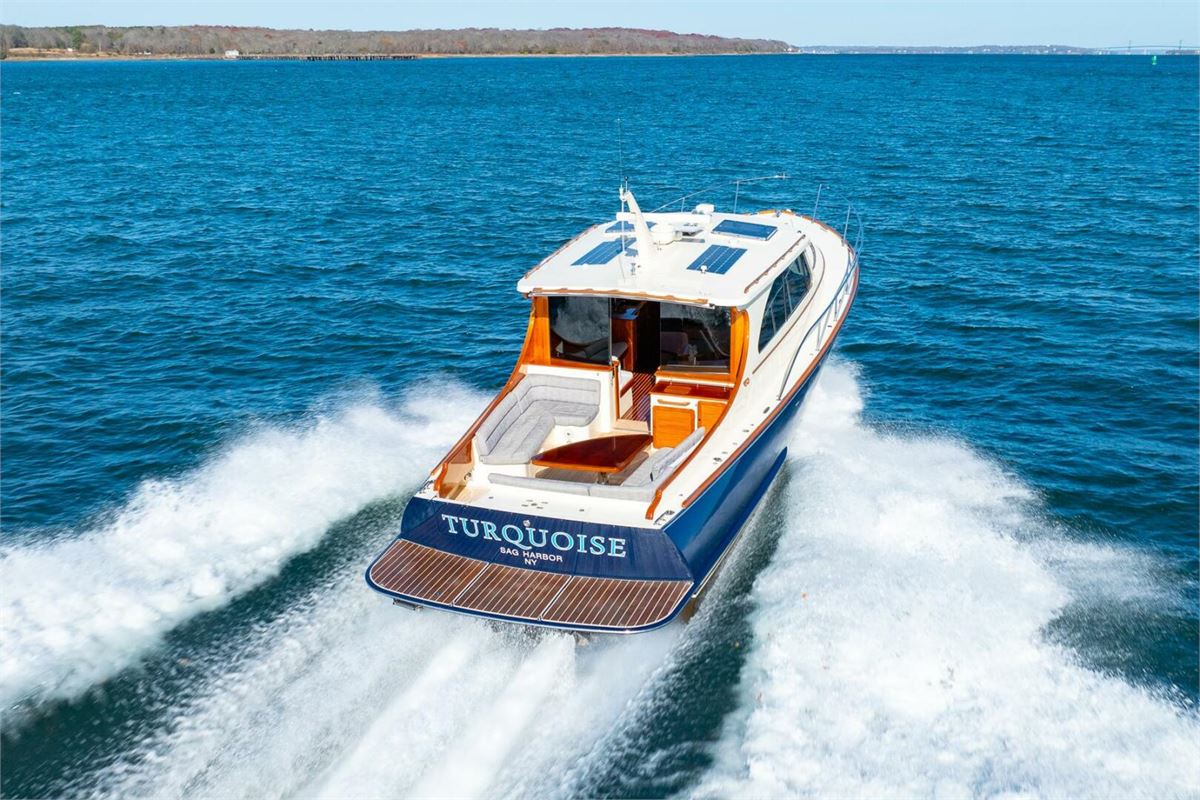 TURQUOISE (name reserved) is a stunning Hinckley Talaria 43. This heavily and tastefully optioned example is in true “Bristol” condition. TURQUOISE spends her winters at Hinckley Yacht Services in heated indoor storage in their comprehensive YachtCare mechanical/ cosmetic package program. The short summer months are spent in Sag Harbor where a Captain maintains her to a high level of care. This multi- Hinckley owner worked at great lengths with the Hinckley Company to create a Talaria 43 that is well suited for extended cruising as well as local harbor cruises. From her extended swim platform and beautiful aft cockpit dining table to the optional features in the pilothouse this T43 sets an incredibly high standard for this highly regarded model.