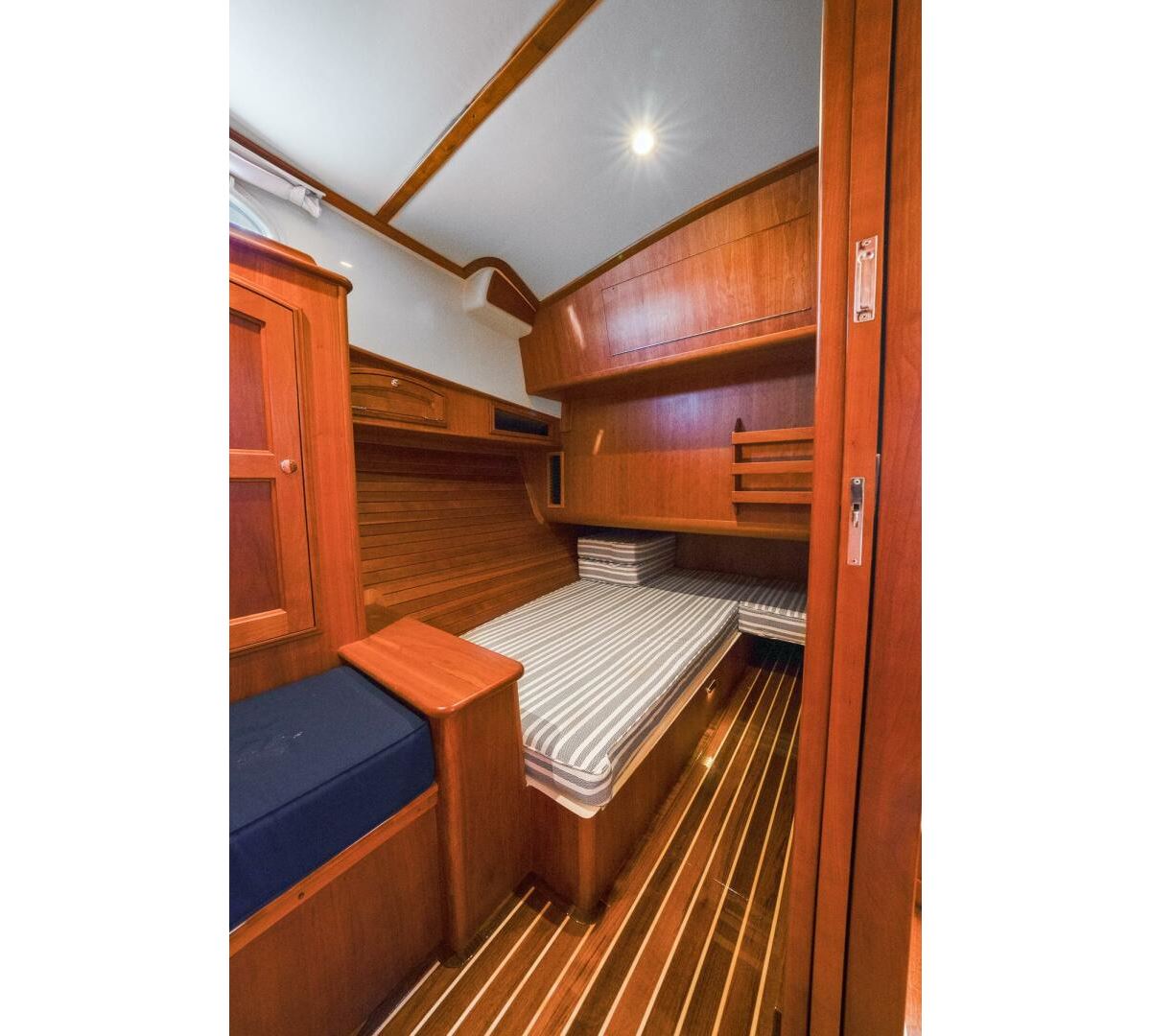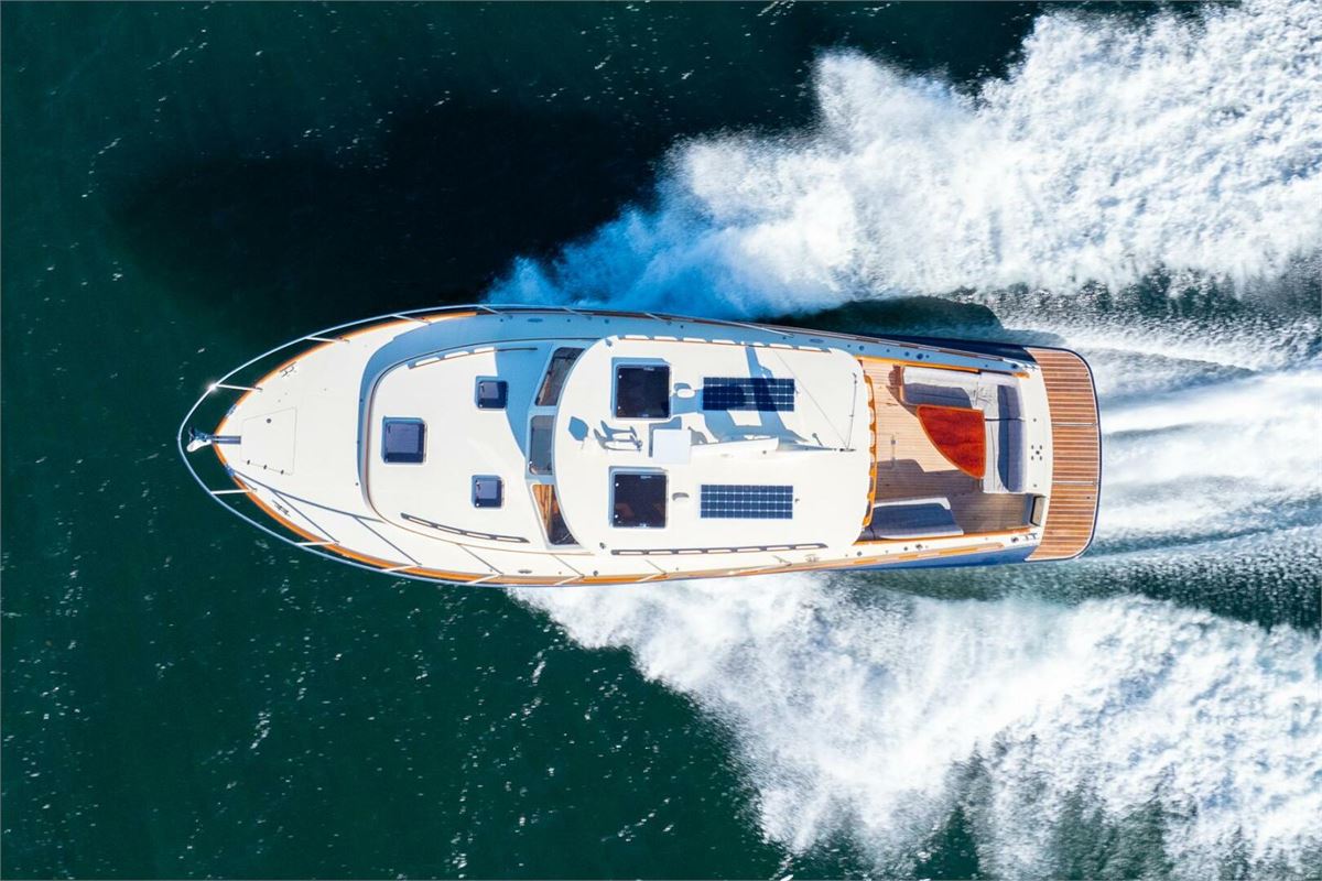 The Talaria 43 features an innovative glass aft enclosure to the pilothouse that disappears with the touch of a button, huge opening hatches, and sliding side windows to make the boat feel open and airy. A galley-up layout results in great light and visibility in connection to the living area. Below, a large primary cabin with a centerline queen berth, a second guest cabin and an ample-sized head (with a separate stall shower) provides a well-laid-out design. Please review the pictures/video and delve into the specifications to see why TURQUOISE is so special.